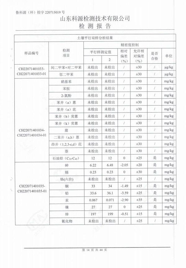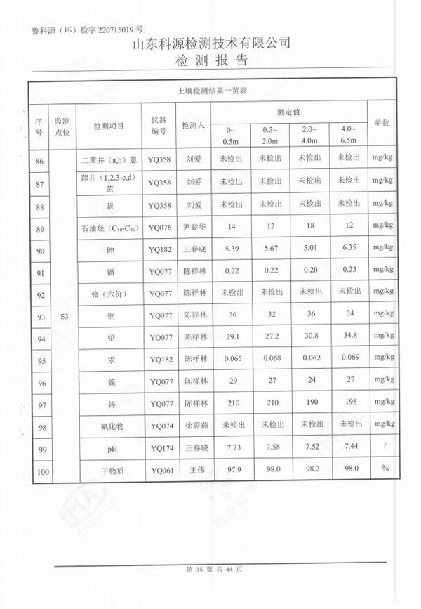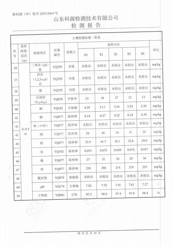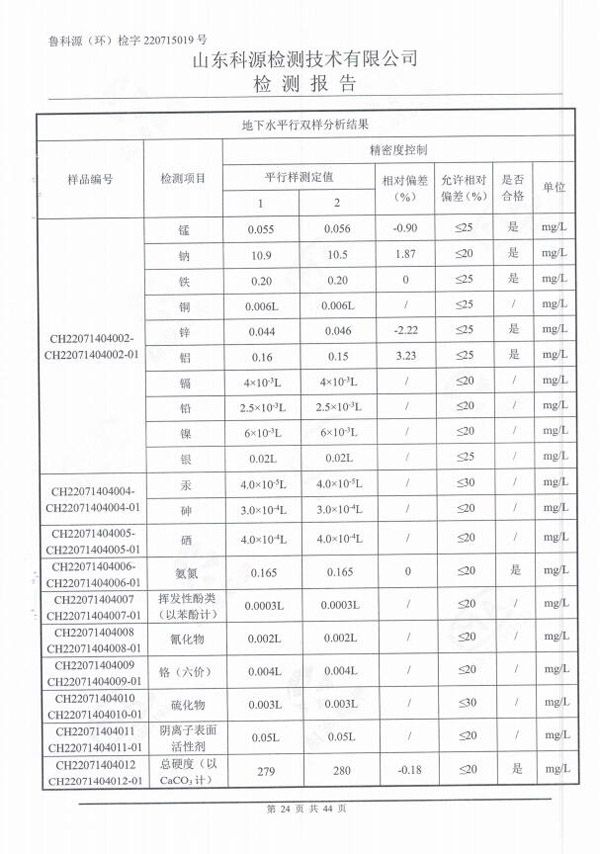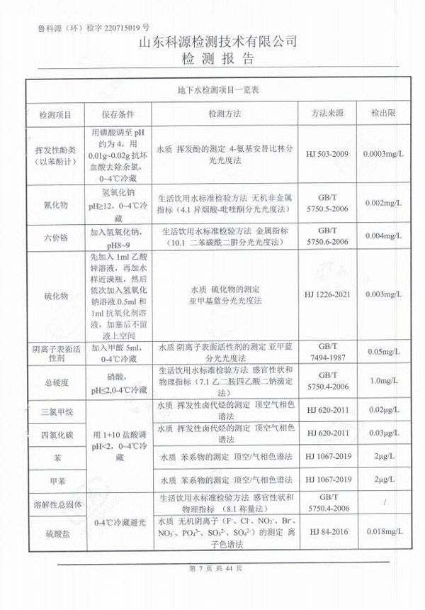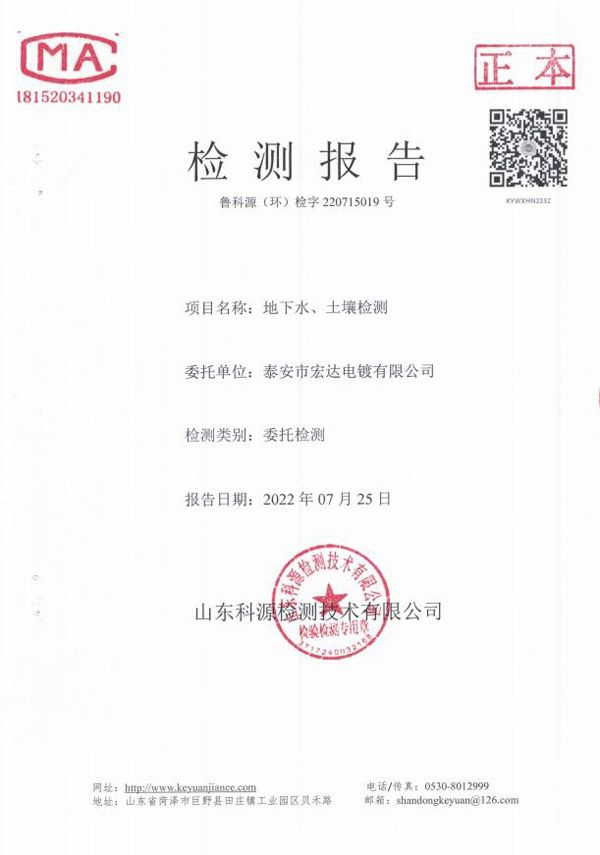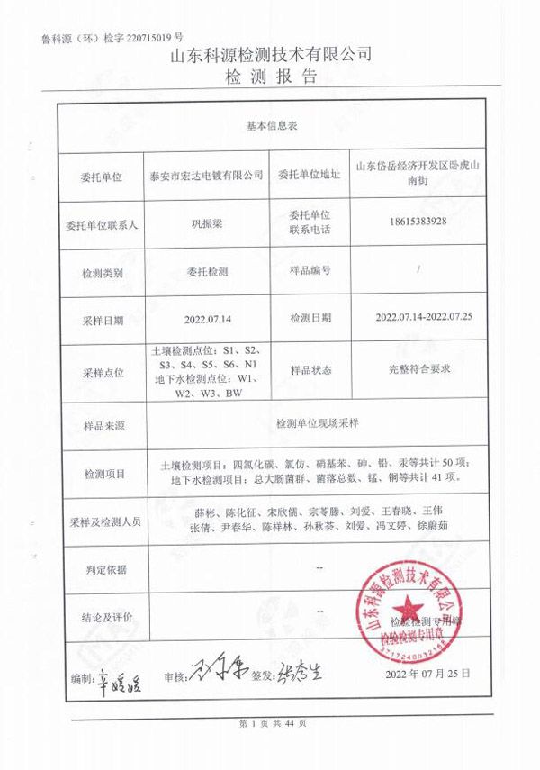 泰安市宏達(dá)電鍍有限公司地下水、土壤檢測報告 2022-8-3 本文被閱讀 994 次