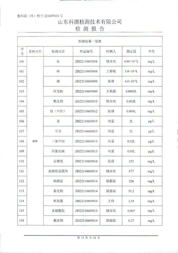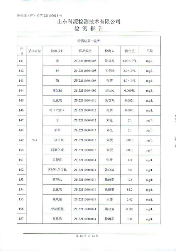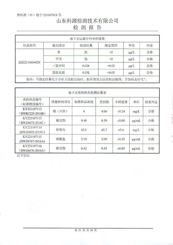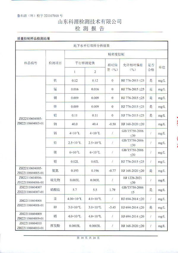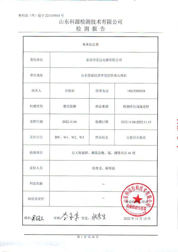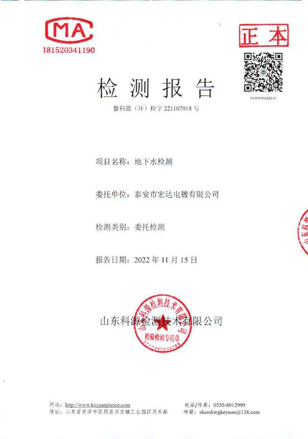 泰安市宏達電鍍有限公司地下水、土壤檢測報告