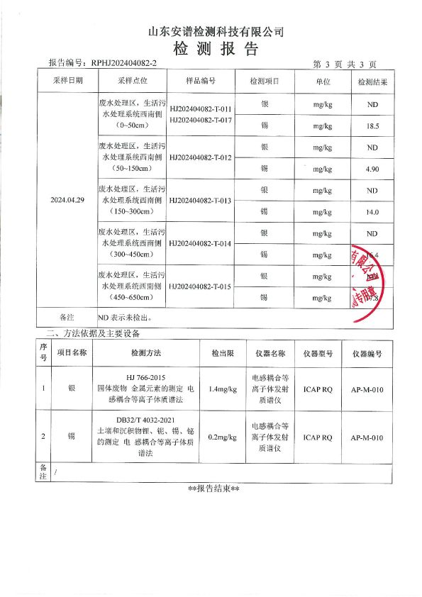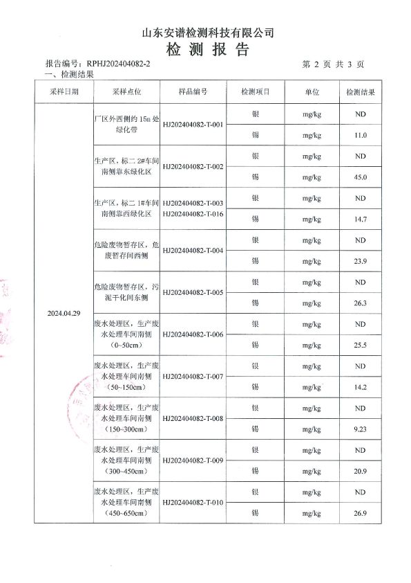 24年度土壤檢測報告(銀、錫特征污染物) 2024-6-19 本文被閱讀 451 次