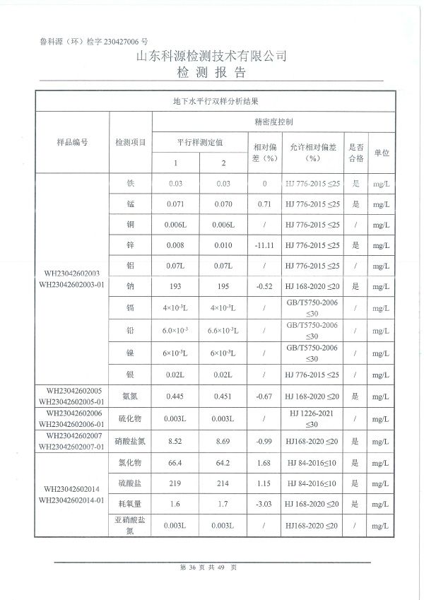 2023年廢氣、地下水、噪聲檢測(cè)報(bào)告