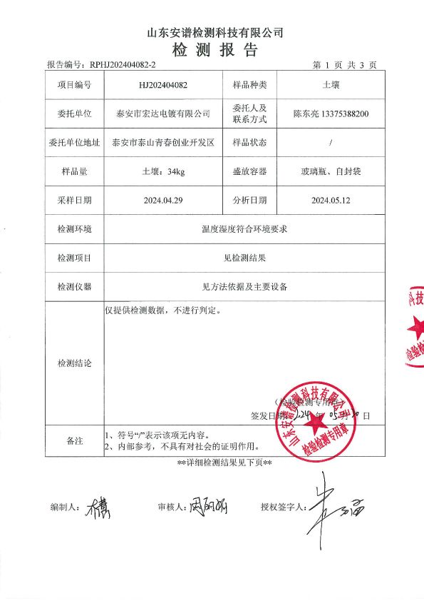 24年度土壤檢測報告(銀、錫特征污染物) 2024-6-19 本文被閱讀 451 次